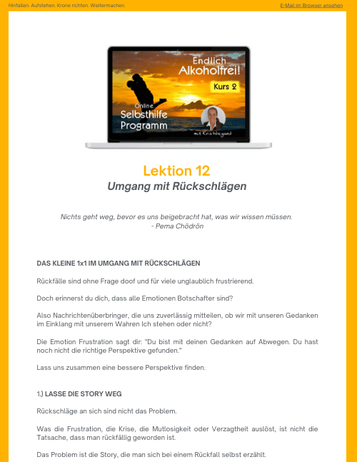 Nach der Bezahlung kannst du direkt mit Kurs 2 des Selbsthilfe-Programms Endlich Alkoholfrei! starten.